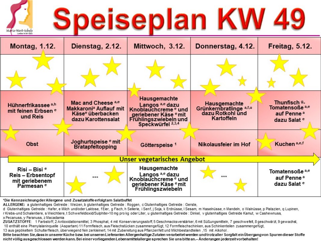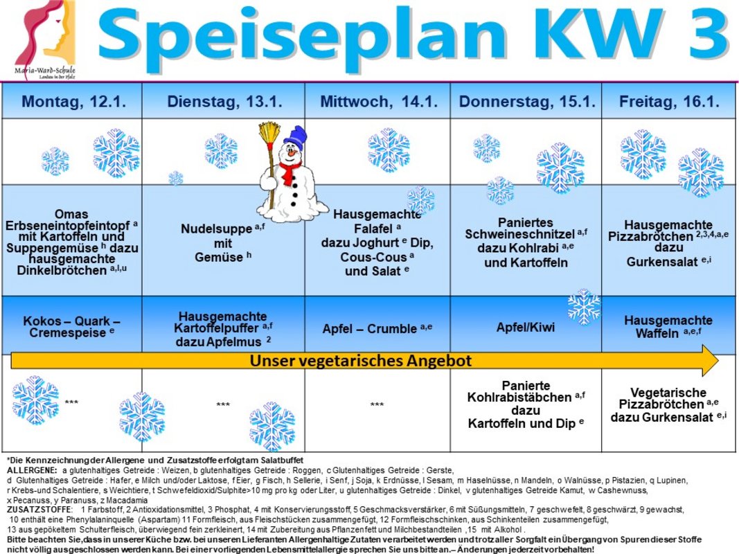 - Du entscheidest, ob du im Speisesaal (Keller) essen möchtest oder das Essen mitnimmst.