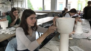 Ein großer Bereich ist das Zeichnen: Von der Perspektive zum Gegenstand, der Figur und schließlich zum Portrait - die Schülerinnen lernen „by doing", aber auch durch die Betrachtung guter Beispiele großer Meister.