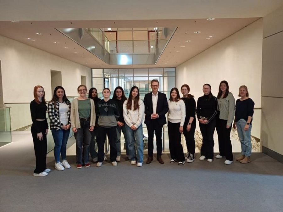 Am Freitagmorgen machten wir uns, noch etwas müde vom gestrigen Abend nach dem Frühstück mit der S Bahn auf den Weg in den Bundestag. Dort, nach einer etwas stressigen Fahrt angekommen, mussten wir erstmal etwas Geduld bei der Sicherheitskontrolle und der Abgabe unseres Gepäck sowie unserer Jacken aufweisen. Anschließend wurden wir auf ein paar Regeln und Maßnahmen für die Plenarsitzung vorbereitet. Nun war es soweit… wir wurden in den Plenarsaal geführt und durften sogar in der ersten Reihe Platz nehmen. Beginn der Sitzung war um 9:00 Uhr und das Thema: Wachstumschancengesetz und Engagement im Afghanistan Krieg. Vielen von uns hat die Plenarsitzung so gut gefallen dass wir gerne noch länger Zuschauer dort gewesen wären. Um 10:00 Uhr mussten wir uns dann allerdings auf den Weg machen zu dem