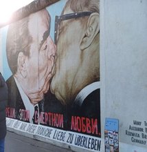 einem kleinen Kämmerchen, nahmen wir Abschied von unserer Jugendherberge, in der wir uns sehr wohlgefühlt hatten. Unser erstes Tagesziel war die East Side Gallery, eine Open Air Galerie auf dem längsten noch erhaltenen Teilstück der Berliner Mauer, die bis 1989 den Ostteil vom Westteil der Stadt trennte. Wir liefen die Mauer entlang und bewunderten die verschiedenen Mauerzeichnungen. Danach ging es mit der U-Bahn zur Bernauer Straße. Die damalige deutsch deutsche Grenze verlief auf der Südseite der Straße direkt entlang der Häuserfront. Die dortigen Häuser standen auf dem Boden der DDR, der Gehweg vor der Haustür gehörte bereits zu West Berlin. Wir gingen die Bernauer Straße entlang bis zum Mauerpark, in dem jeden Sonntagmorgen ein riesiger Flohmarkt stattfindet. Dort konnten wir eine Vielfalt von interessanten Gegenständen entdecken. Wir stöberten durch die verschiedenen Stände bis es Zeit wurde, zurück zur Jugendherberge zu fahren, um unser Gepäck abzuholen. Als wir am Hauptbahnhof ankamen, war unser ICE bereits da. Lena sorgte noch für Aufregung, da sie für sich und Frau Trauth noch etwas zum Essen holen wollte und bis kurz vor Abfahrt unseres Zuges immer noch nicht da war. Wirklich in der allerletzten Minute tauchte sie gerade noch rechtzeitig auf, welche Erleichterung für alle. Typisch für die Deutsche Bahn kam unser ICE in Mannheim mit 16 minütiger Verspätung an, so dass wir unseren Anschlusszug nach Neustadt nicht mehr erreichten und letztendlich erst mit 40 minütiger Verspätung erschöpft, aber glücklich in Landau ankamen. Die ganze Zeit in Berlin war aufregend und schön. Wir haben viel gelernt, erlebt und hatten sehr viel Spaß.