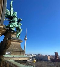 Nach einem köstlichen Frühstück brachen wir gegen 10:00 Uhr zum Berliner Dom auf. Dort erkundeten wir begeistert sein Inneres und erklommen anschließend 270 Stufen bis zur imposanten Kuppel, die stolze 96 Meter in die Höhe ragte. Unmittelbar danach besuchten wir das Humboldt Forum gegenüber, wo uns eine interessante Führung durch die faszinierende Geschichte Berlins geboten wurde. Ein besonderes Highlight war das Armband, das uns dazu einlud, regelmäßig an Abstimmungen teilzunehmen, etwa darüber, ob wir Freiheit nehmen oder Freiheit schaffen möchten. Nach der anregenden Führung genossen wir vier Stunden Freizeit, erkundeten in kleinen Gruppen die Stadt und erlebten Berlin auf eigene Faust. Am Abend machten wir uns schick, um in das größte Theater der Welt, den Friedrichstadtpalast, zu gehen. Wir taucht en ein in das beeindruckende „Falling in Love“ Theaterstück, das durch seine Vielfalt an Farben, Formen und Kostümen bestach. Akrobatik unter der Theaterdecke und toller Gesang rundeten das Stück ab. Besonders beeindruckend war der größte Swarovski Diamant der Welt, den wir bewundern durften. Das Finale des Stücks begeisterte uns zutiefst, ebenso wie der berührende Moment, als wir alle unsere Taschenlampen einschalteten und den Raum in ein Meer kleiner Lichter verwandelten. In der Pause gönnen wir uns einen erfrischenden Sekt und ließen den Abend auf diese wundervolle Weise ausklingen.