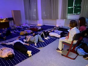 Passend zum Motto der diesjährigen Matinée präsentierte die Klasse 5b das Märchen „Als der Zauberer Zinnobius die Sonne verschluckte“. Gemütlich auf Decken und Kissen lauschten die Besucherinnen der bebilderten Geschichte. Anschließend durften alle selbst aktiv werden und eigene, im Kerzenschein glitzernde Lichter basteln.