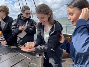 Dort startete unsere Kutterfahrt. Während der Fahrt wurden die Netze ausgeworfen und ein waschechter Seebär erklärte uns den Beifang, bei dem wir viel über die Lebewesen der Nordsee erfahren durften. Da in uns allen ein großes Herz für Tiere schlägt, haben wir die Krabben, Seesterne und Fische wieder über Bord ins Meer gesetzt, sonst wären sie im Kochtopf gelandet.