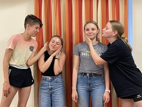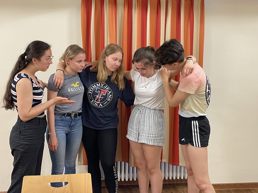 Nach einer köstlichen Stärkung beim Mittagessen ging es mit Improvisationsübungen weiter. Dazu teilte uns Frau Trauthwein in zwei Gruppen, mit einmal vier Personen und einmal drei Personen, auf.