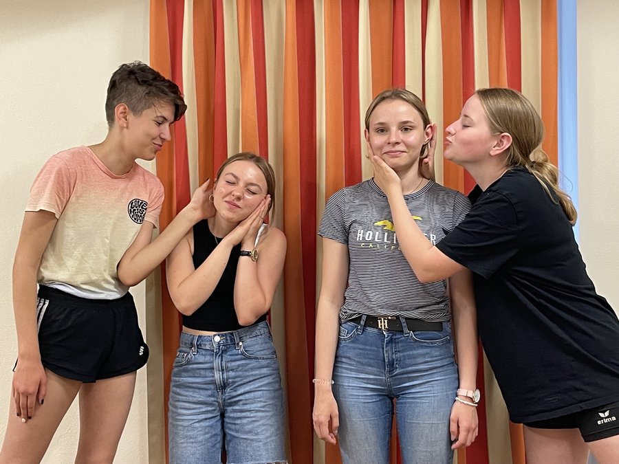 Im Anschluss stellte uns Frau Trauthwein eine Auswahl an Stücken vor, aus denen wir in unseren Zweierteams unser Stück aussuchen durften, die wir nächstes Jahr mit unseren Theaterkids einüben werden. Die kommende Stunde nutzen wir um uns in das Stück einzulesen, damit wir dann im Anschluss diese den anderen präsentieren konnten. Während ein Team sein Stück vorstellte, konzipierte der Rest spontan dazu passende Standbilder.