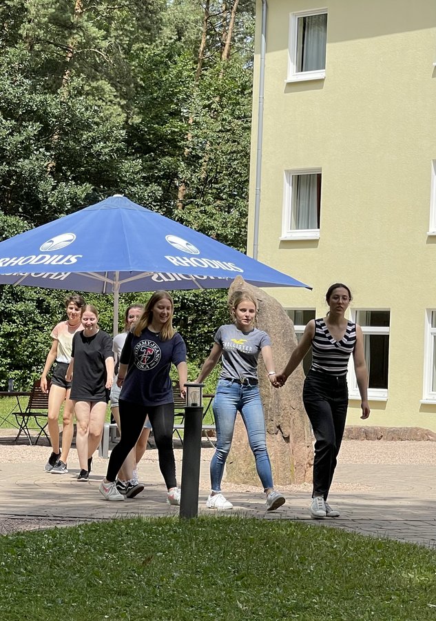 Unser letzter Tag in der Jugendherberge begann mit Kofferpacken und dem Ausräumen der Zimmer. Nach dem anschließenden Frühstück besprachen wir als letzten organisatorischen Punkt den Ablaufplan für die Proben im kommenden Schuljahr, bevor wir dann in zwei Abschlussspiele übergingen. Gerade bei diesen bemerkten wir auch selbst, wie viele Forstschritte jede einzelne von uns in den letzten Tagen gemacht hatte und wie stark auch unsere Gruppendynamik geworden war. Und natürlich durften wir als allerletztes auch nicht unsere lieb gewonnenen Bäume vergessen, weswegen wir uns herzlich von ihnen mit erneuten Umarmungen, begleitet vom dem bereits genannten Lied “Omm”, verabschiedeten.