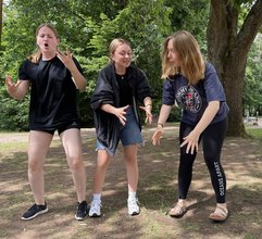 Da der frühe Vogel den Wurm fängt ging es für uns samstags, nach einem leckeren Frühstück, direkt draußen weiter. Um wach zu werden begannen wir den Probetag mit Dehn und Streckübungen, sowie mit einem schnellen Reaktionsspiel. Wesentlich wacher drehte sich heute viel um unsere Stimme. Spielerisch erlernten wir so wie wichtig eine gewisse Lautstärke auf der Bühne ist, genauso wie das deutliche artikulieren von Worten.