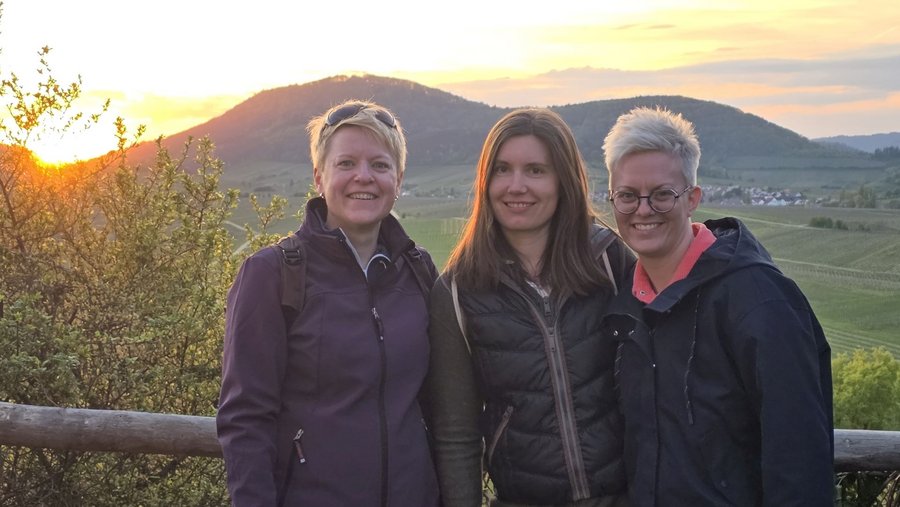 Am frühen Abend machten sich über 100 Schülerinnen, Lehrkräfte und Eltern der Maria-Ward-Schule auf den Weg zur Nacht der Begegnung, die dieses Jahr unter dem Thema: „Alles bleibt anders“ stand. Der Weg führte von der Maria-Ward-Schule zur kleinen Kalmit und zurück. An fünf Stationen luden spirituelle Impulse ein, sich im eigenen Leben dem Bedürfnis nach Sicherheit und dem Umgang mit Veränderungen und deren Chancen auseinanderzusetzen. Gedanken zu Veränderungen in der Natur, der Metamorphose von Schmetterlingen, eigenen biografischen Entwicklungen und der inneren Wandlung Marias aus Magdala am Grab Jesu begleiteten uns auf dem Weg. In den vielfältigen Gesprächen mit den Mitpilgernden waren ein facettenreicher Austausch und wohltuende Begegnung möglich. Der sich verändernde Tag von einem warmen Frühlingsabend in die Dämmerung über einen farbenfrohen Sonnenuntergang in die Nacht begleiteten uns.